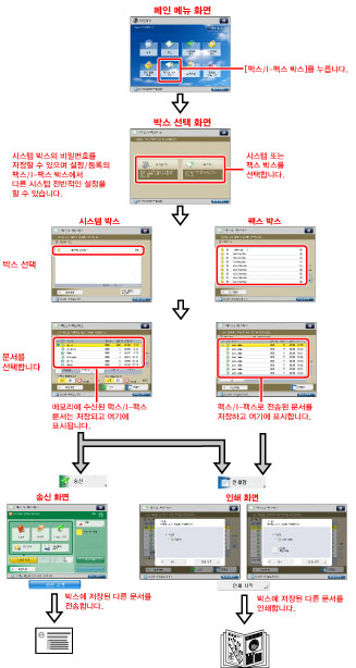 팩스/I-팩스 박스에서 원치 않는 파일 및 이미지 데이터를 삭제하여 새 파일을 저장할 공간을 확보하는 것이 좋습니다.