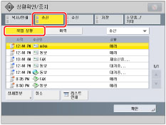 취소된 작업은 작업 이력 화면에 <NG>(No Good)로 표시됩니다.