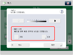 <배경 조정>로 [조정]을 눌러 배경 농도를 조정할 경우 [자동] 설정이 취소됩니다. 또한, [조정]에서 수동 조정하는 동안 [자동]을 누르면 조정이 취소됩니다. 기기에서 배경에 맞게 농도를 자동으로 조정합니다.