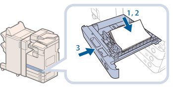 3. 용지 카세트가 닫힘 위치에서 찰칵 소리가 날 때까지 용지 카세트를 기기 안으로 부드럽게 밀어 넣습니다. |