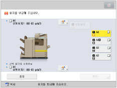 [환경 설정](설정/등록)의 [용지 설정]에서 들어 있는 용지의 크기와 종류를 등록합니다.