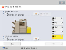 인쇄 중에 용지를 넣으라는 메시지가 나타나는 경우, 적절한 용지를 넣은 후에 잔여 인쇄가 자동으로 수행됩니다. 다른 급지 위치를 선택한 경우 [확인]을 누르면 나머지가 인쇄됩니다.