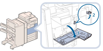 폐토너통이 가득 차면 폐토너통을 교체하는 방법에 대한 지침 화면이 터치 패널 화면에 나타납니다. 아래 설명된 절차에 따라 폐토너통을 교체합니다.