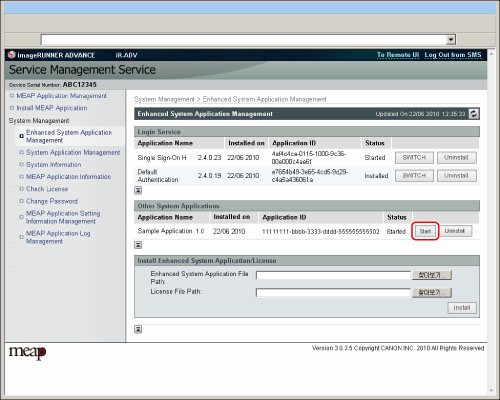 시스템 어플리케이션 시작/정지