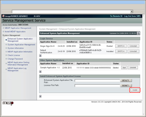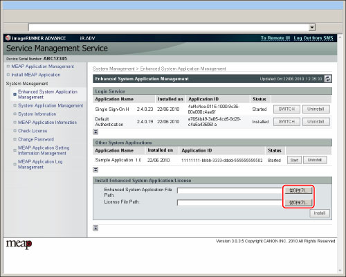 시스템 어플리케이션을 설치하는 경우 어플리케이션 파일과 라이센스 파일을 지정해야 합니다.