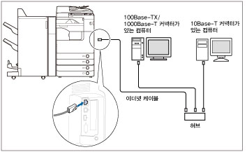 10Base-T/100Base-TX/1000Base-T 혼합 환경을 사용하는 경우에는 네트워크 장치(허브, 라우터 등)가 혼합 환경을 지원해야 합니다. 자세한 설명은 각 지역 공인 대리점에 문의하십시오.