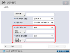 <암호화 알고리즘> 드롭다운 리스트에서 [DES] 또는 [AES]를 선택하고 → [암호화 비밀번호]를 설정합니다.