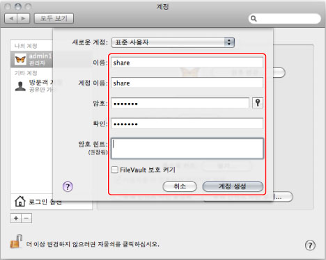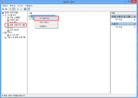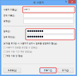 Active Directory 환경에서 사용자를 설정하는 절차는 위에 있는 절차와 다릅니다. 자세한 내용에 대해서는 Windows 설명서를 참고하십시오.