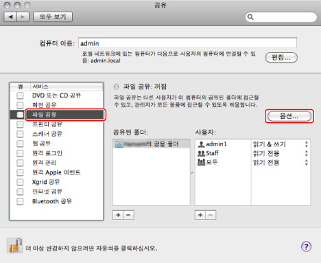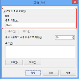 Active Directory 환경에서 공유 폴더의 보안 설정을 지정하는 절차는 위에 있는 절차와 다릅니다. 자세한 내용에 대해서는 Windows 설명서를 참고하십시오.
