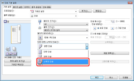 인쇄 화면은 사용 중인 어플리케이션 유형에 따라 다를 수 있습니다.