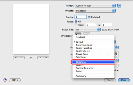 Mac [프린트] 대화상자의 각 패널에 지정된 설정을 미리 설정으로 저장할 수 있습니다. 미리 설정은 단일 설정으로 저장된 자주 사용되는 인쇄 기능의 조합을 말합니다. 필요에 따라 등록된 미리 설정을 간단히 선택하여 쉽게 인쇄할 수 있습니다.