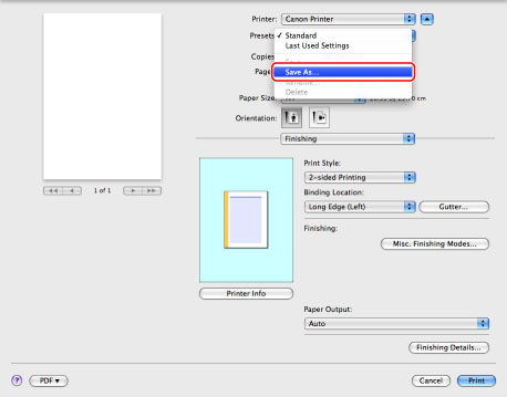 동일한 인쇄 설정을 자주 사용하는 경우 설정을 미리 설정으로 등록하여 매번 설정을 지정하는 번거로움을 덜 수 있습니다.