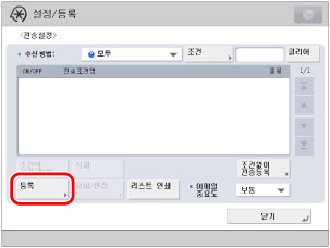 등록된 전송 조건을 선택하고 → [조건의 설정/해제]를 누릅니다.