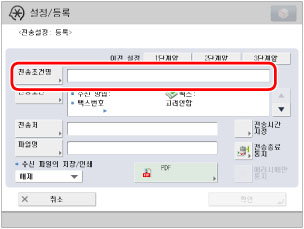[전송조건명]을 누르고 → 지정된 조건의 이름을 입력한 다음 → [확인]을 누릅니다.