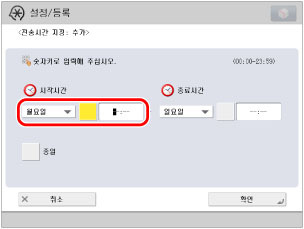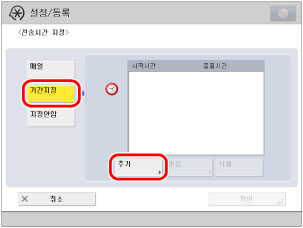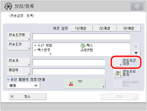 [전송시간 지정]을 누르고 → 전송 조건이 유효한 시간 및 요일을 지정합니다.