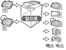 수신된 팩스를 다른 수신인에게 자동으로 전송하도록 기기를 설정할 수 있습니다. 예를 들면, 다른 곳에서 근무하는 직원을 위해 팩스를 해당 위치로 자동 전송하도록 기기를 설정할 수 있습니다.
