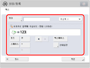 (설정/등록) → [수신인 설정] → [수신인 등록]을 누릅니다.