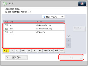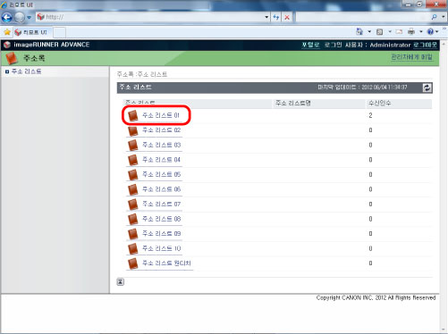 [주소록]을 클릭하고 → 주소 리스트 화면에서 [주소 리스트 01]을 클릭합니다.