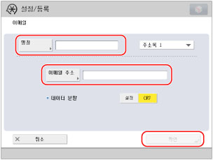 터치 패널 화면에서 이메일 주소를 등록할 수 있습니다.