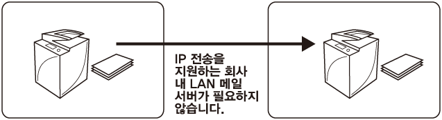 IP 팩스라고도 하는 메일 서버를 사용하지 않는 데이터 전송으로 ITU-T Recommendation T.38(IP 네트워크를 통한 실시간 Group 3 팩시밀리에 대한 절차)을 준수하며 일부 다른 기기에서 사용할 수 있습니다. 그러나 이러한 기기는 Canon 기기와 인트라넷 팩스를 수행할 수 없습니다. |