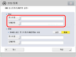 [DNS 설정 (IPv4)] 화면에서 [호스트명] 및 [도메인명]을 확인합니다.
