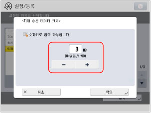 (설정/등록) → [기능 설정] → [송신] → [이메일/I-팩스 설정] → [최대 송신 데이터 크기]를 누릅니다.