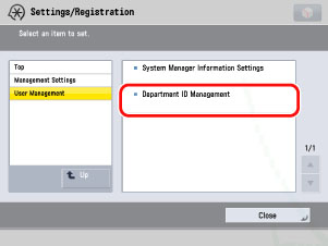 (설정/등록) → [관리설정] → [사용자 관리] → [부문별 ID 관리]를 누릅니다.