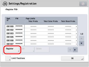 <0>이나 <00>과 같이 0 (제로) 숫자만 있는 부문 ID 또는 비밀번호는 저장할 수 없습니다. 0 (제로)으로 시작하는 비밀번호를 입력하면 앞의 0(제로)은 무시됩니다. 예: <02> 또는 <002>를 입력하면 <0000002>가 저장됩니다.