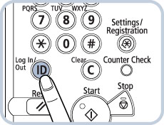 (Log In/Out)을 누르면 기기가 작동 중인 경우 부문 ID 및 비밀번호를 입력하라는 화면이 표시됩니다.