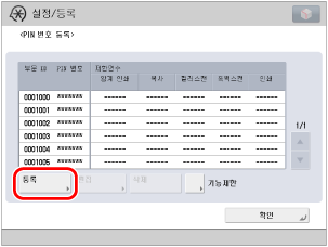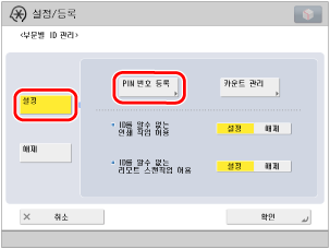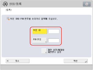 (설정/등록) → [관리설정] → [사용자 관리] → [부문별 ID 관리]를 누릅니다.