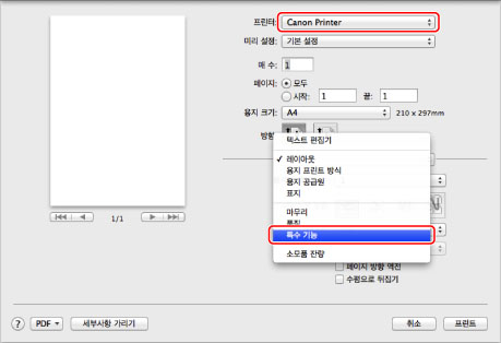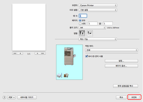 화면은 프린터 드라이버의 종류 및 버전과 사용 중인 어플리케이션 소프트웨어에 따라 다를 수 있습니다.