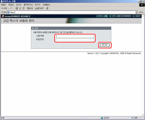사용자 이름 및 비밀번호를 입력하고 → [로그인]을 클릭합니다.