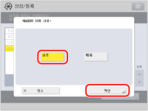 [설정]을 선택하고 → [확인]을 누릅니다.