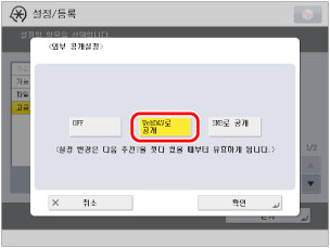 (설정/등록) → [기능 설정] → [파일 저장/이용] → [고급 박스 설정] → [외부 공개설정]을 누릅니다.