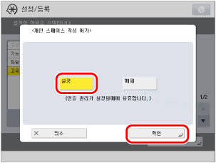 기기의 조작 패널에서 개인 스페이스 설정을 지정합니다.