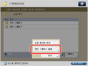 (설정/등록) → [기능 설정] → [파일 저장/이용] → [고급 박스 설정] → [개인 스페이스 작성 허가]를 누릅니다.