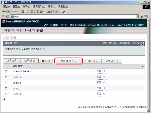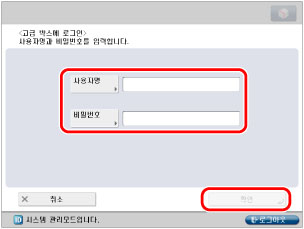 사용자 정보 등록"의 5단계에서 설정한 사용자명과 비밀번호를 입력하고 → [확인]을 누릅니다.