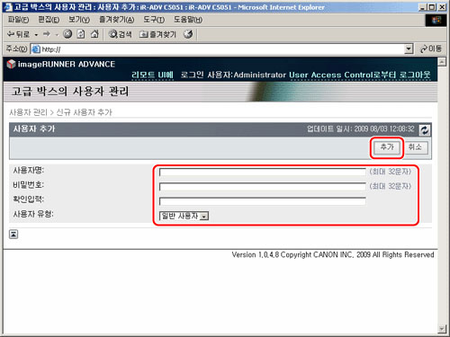 각 항목을 입력하고 → [추가]를 클릭합니다.