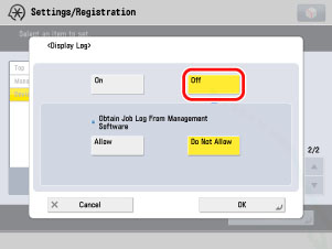 <관리 소프트웨어로부터 작업이력 취득>에서 [허가] 또는 [허가안함]을 선택하고 → [확인]을 누릅니다.