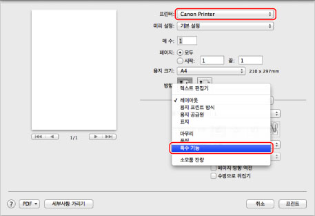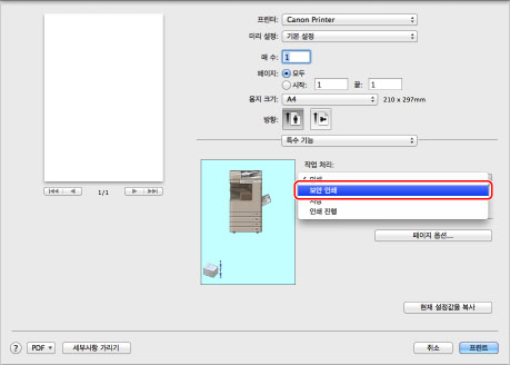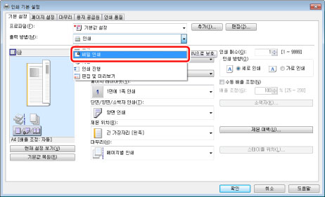 화면은 프린터 드라이버의 종류 및 버전과 사용 중인 어플리케이션 소프트웨어에 따라 다를 수 있습니다.