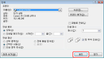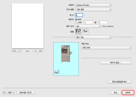 인쇄 화면은 사용 중인 어플리케이션 유형에 따라 다를 수 있습니다.