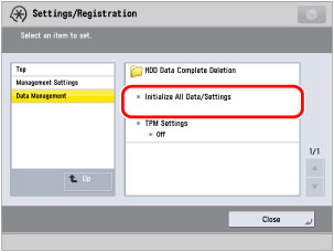하드 디스크에서 데이터를 삭제하는 동안에는 기기를 사용할 수 없습니다. 또한 데이터를 완전히 삭제하고 나면 기기에서 스캔 준비가 완료될 때까지 다소 시간이 걸릴 수 있습니다.