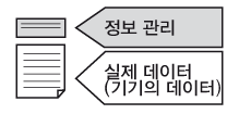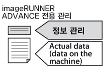 저장소의 데이터는 파일 이름, '실제 데이터', 데이터 내용 등의 '관리 정보'로 구분됩니다. 관리 정보는 imageRUNNER ADVANCE 기기의 독자적인 방법을 사용하여 관리됩니다.