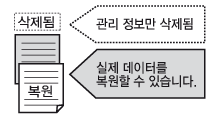 데이터를 삭제하는 작업(예: 휴지통 비우기, 포맷 등)은 '관리 정보'만 삭제합니다. 하드 디스크에 실제 데이터가 숨겨져 있습니다.