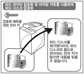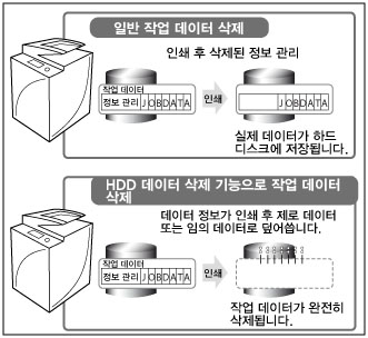 * 하드 디스크 데이터 삭제 기술은 일괄 처리보다는 실시간 처리를 수행합니다. 이 기능으로 작업 이력 데이터도 사용하지 못하게 할 수 있습니다.