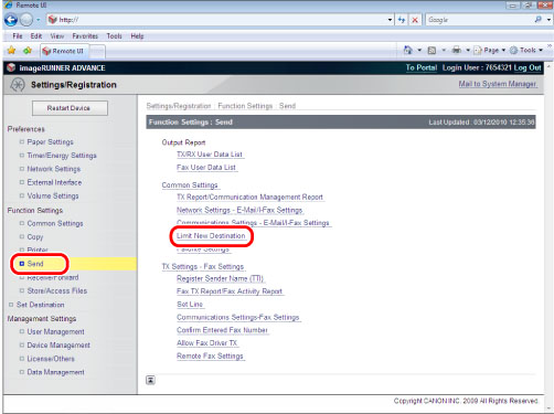(설정/등록) → [기능 설정] → [송신] → [공통 설정] → [신규 수신인 제한]을 누릅니다.