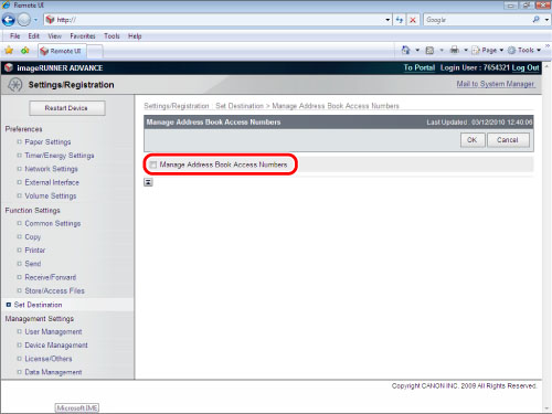 비밀번호를 입력하지 않으면 리모트 UI에서 주소록을 표시할 수 없습니다.
