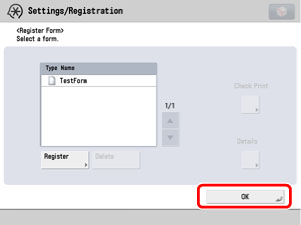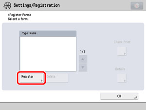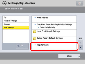 (설정/등록) → [기능 설정] → [공통] → [인쇄 설정] → [합성 폼 등록]을 누릅니다.