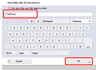 양식으로 등록된 이미지를 확인하려면 [확인인쇄]를 눌러 이미지 샘플을 인쇄합니다.