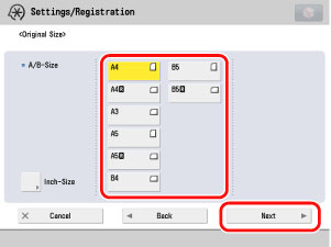 이미지 모양을 포함하는 원고 크기를 선택하고 → [다음화면]을 누릅니다.